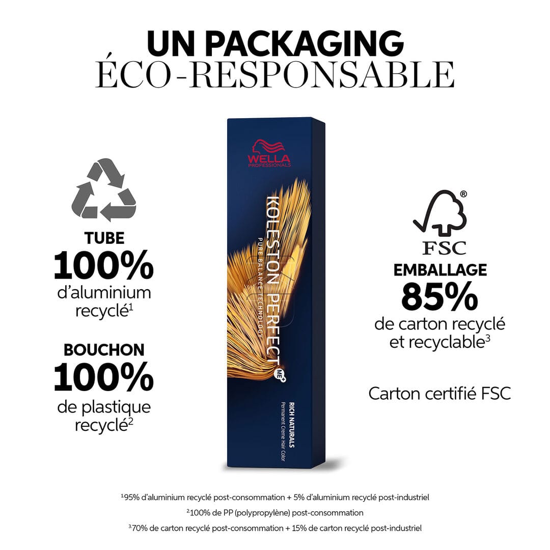 Le packaging de Koleston Perfect Me+ est désormais en aluminium 100 % recyclable, contribuant à réduire l’usage de plus de 700 tonnes de plastique vierge chaque année.