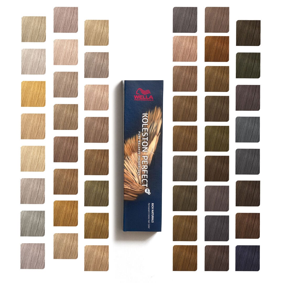 Koleston Perfect Me+ garantit une couverture optimale des cheveux blancs jusqu’à 100 %, tout en offrant des reflets intenses et une brillance exceptionnelle. Avec près de 100 teintes disponibles, du noir profond aux tons froids et tons chauds, chaque client peut trouver la nuance idéale.