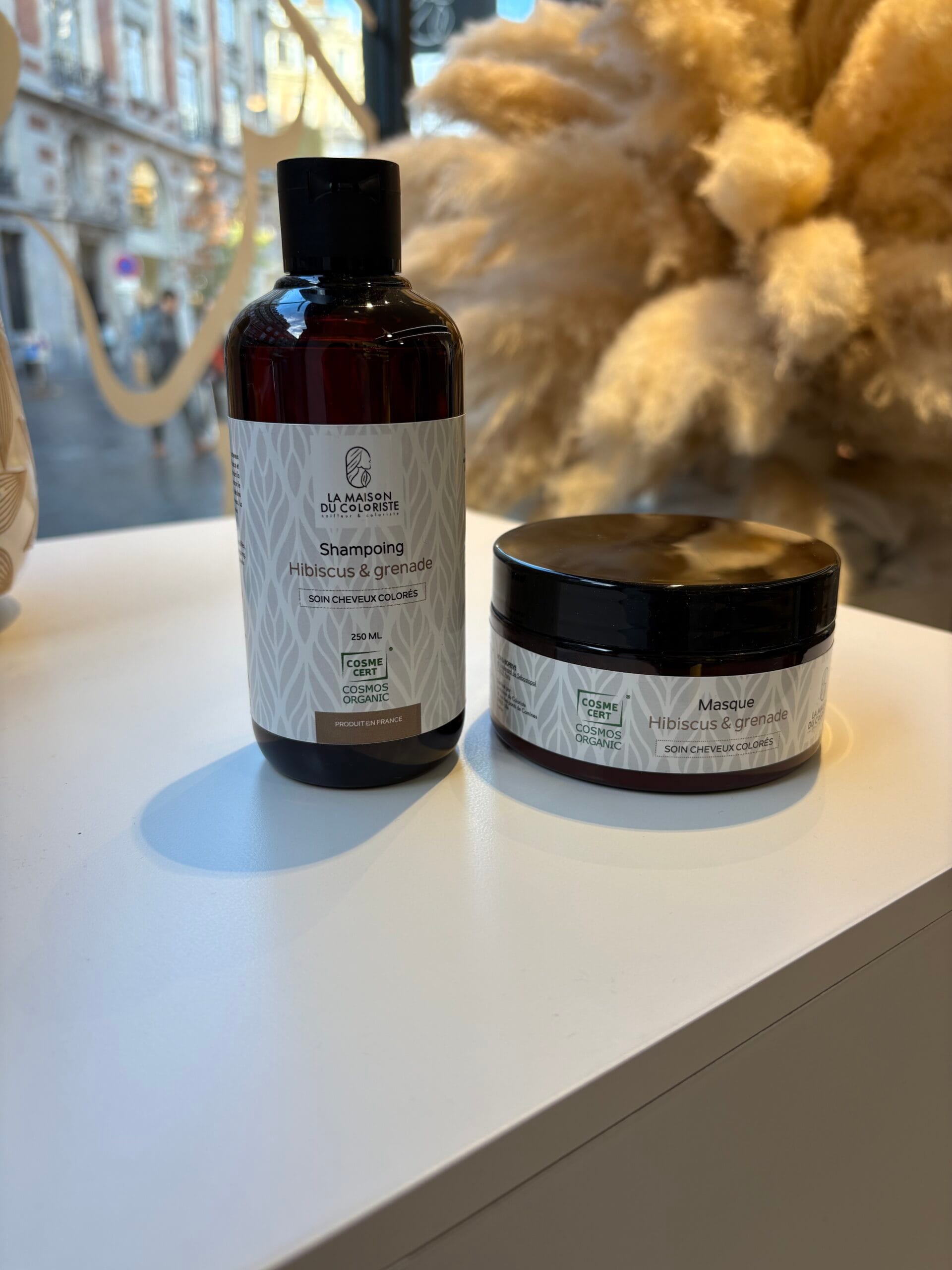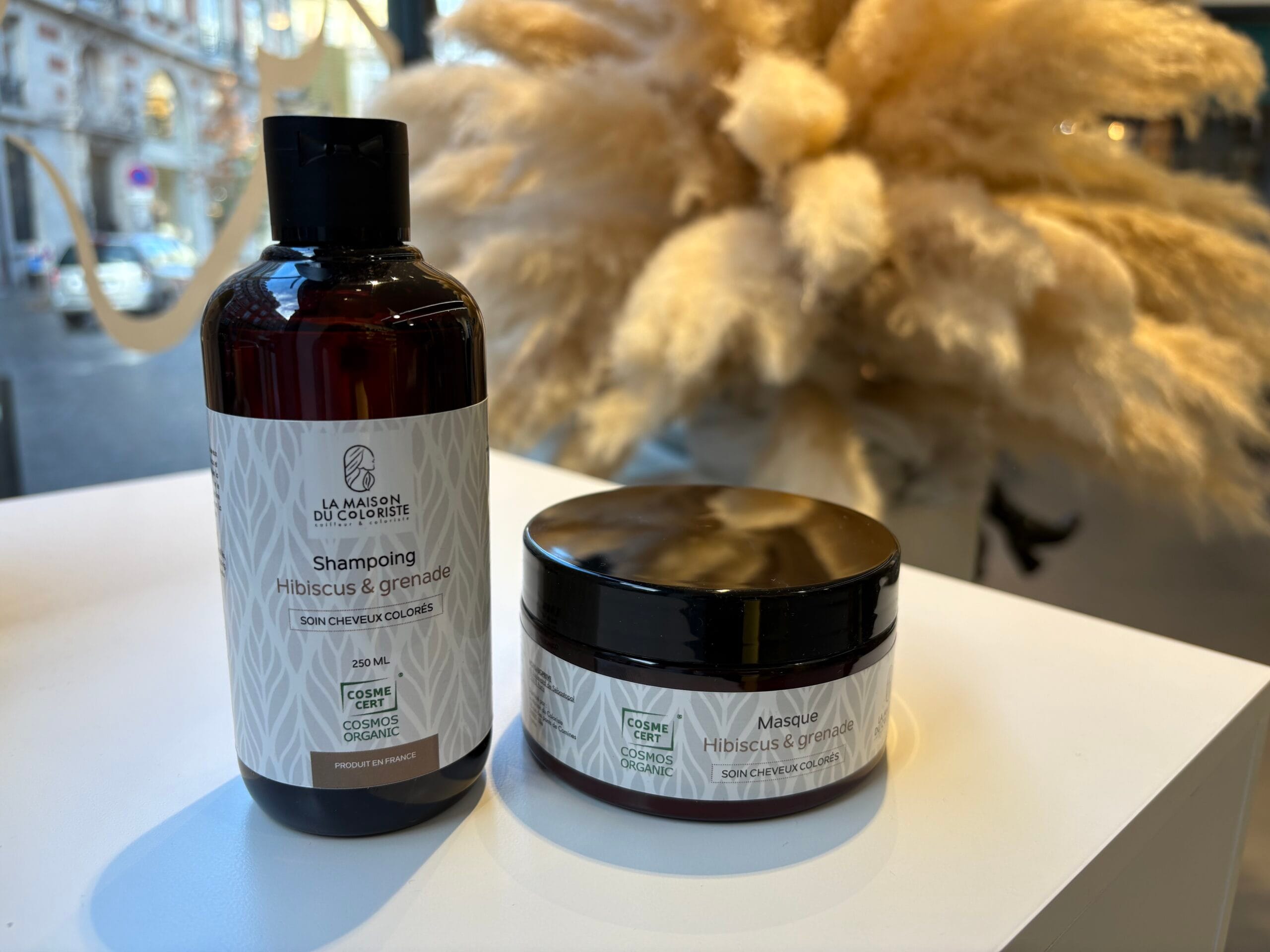 La Maison du Coloriste propose une gamme de produits capillaires professionnels — shampoings, masques, soins — formulés avec des ingrédients naturels, doux et efficaces.